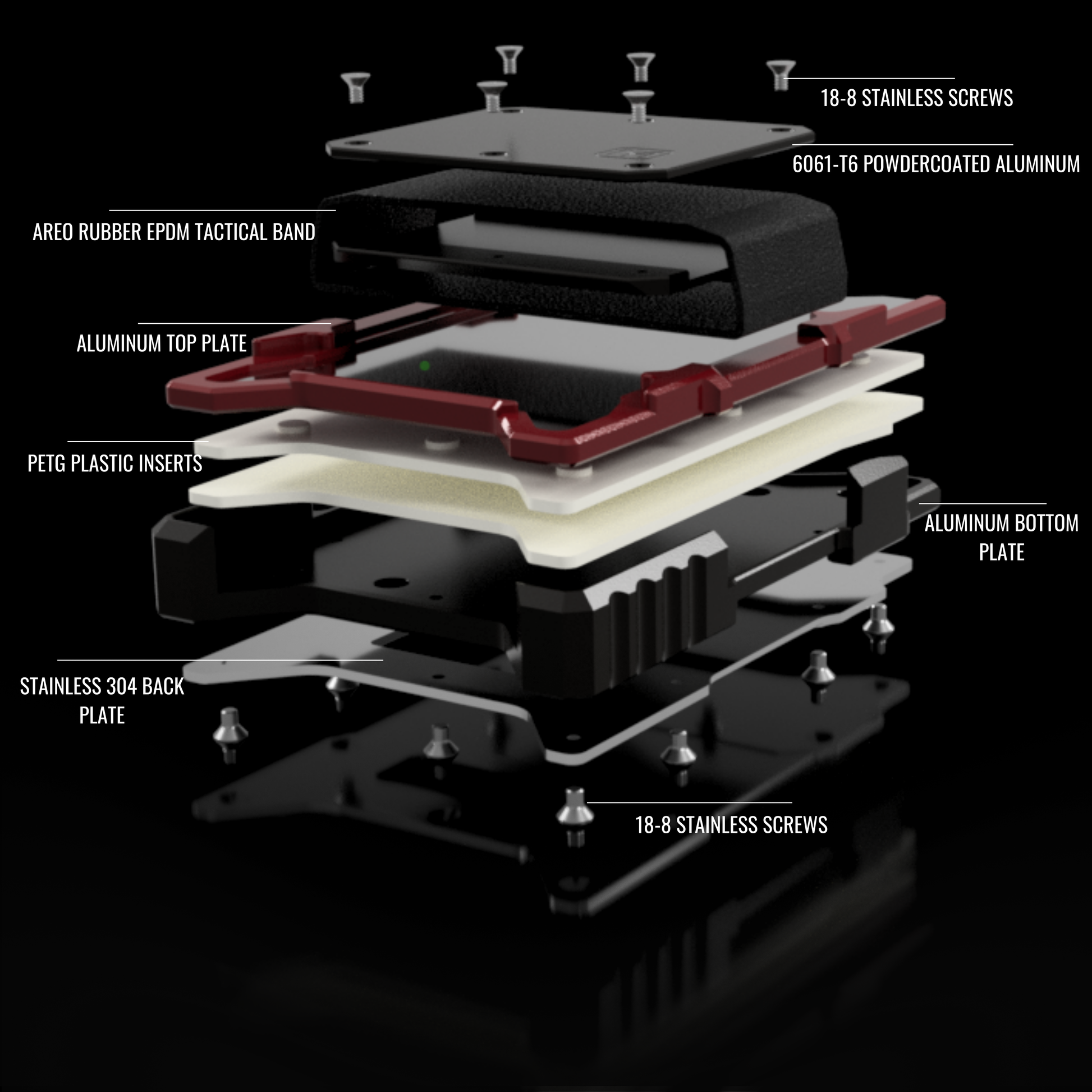 Every X1 begins as a solid block of 6061-T6 aluminum, CNC-machined to exacting tolerances. It is paired with a 304 stainless steel back plate, secured by 18-8 stainless steel screws, and fitted with PETG inserts that provide a seamless, gliding motion when drawing or replacing your cards.